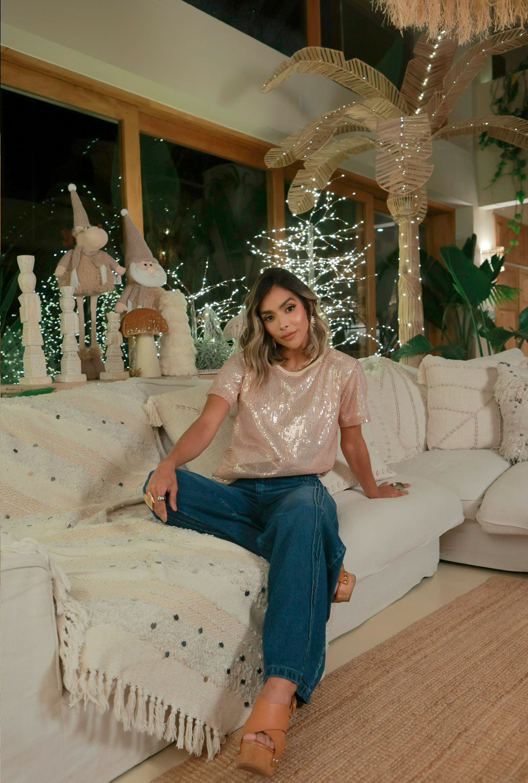 Una blusa que combina glamour, comodidad y ese brillo que te hace destacar sin esfuerzo.